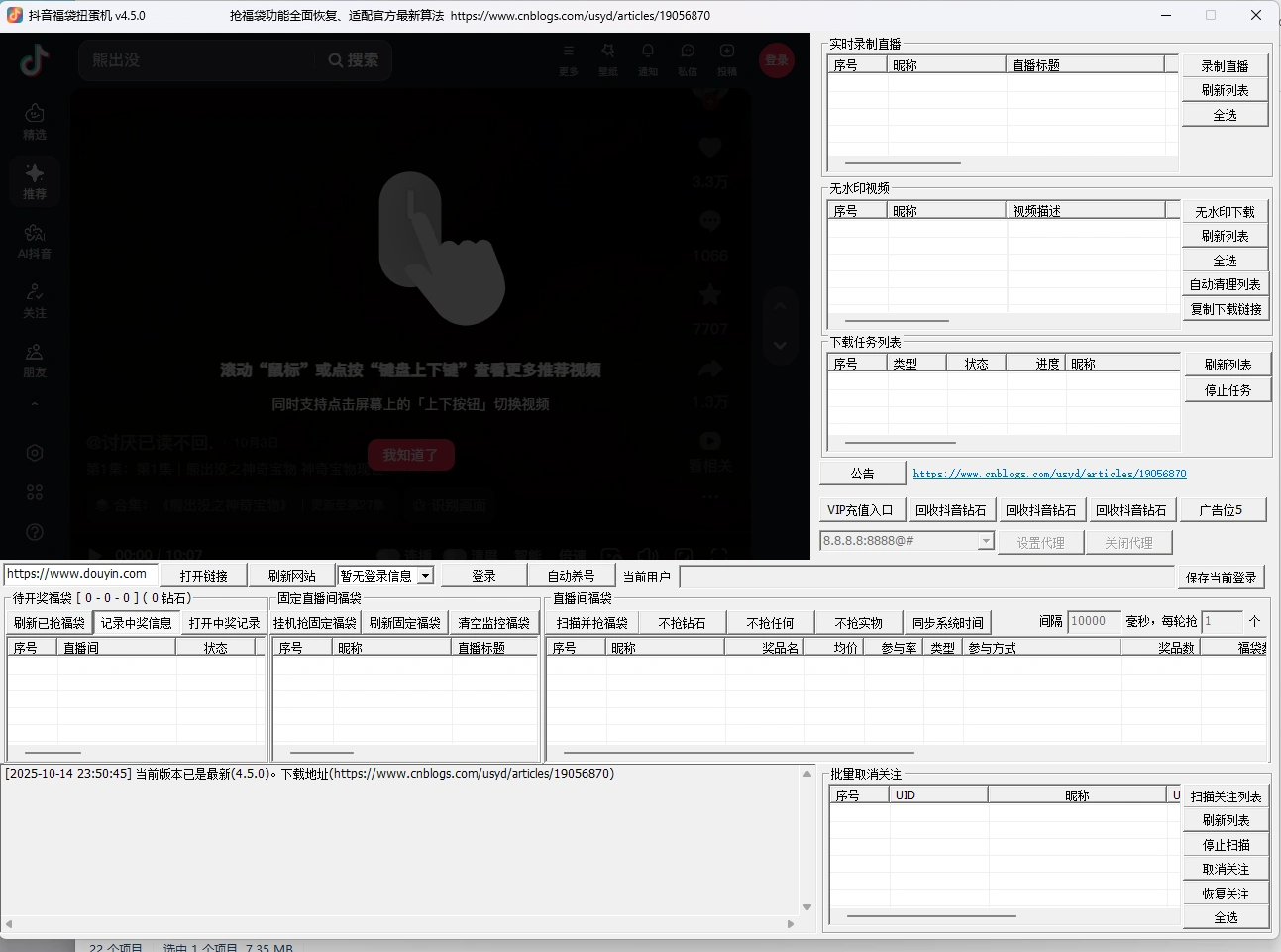 - 6、直播间抢福袋、HD高清录制、批量取关的功能,需要用户登录抖音账号