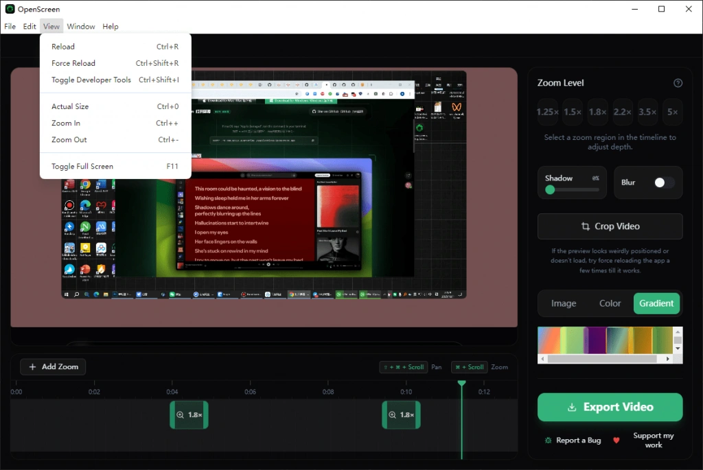 - 今天正巧发现了这款Openscreen,支持对演示类、教程类视频进行缩放和局部放大效果制作,使用非常简单,而且支持快捷键操作