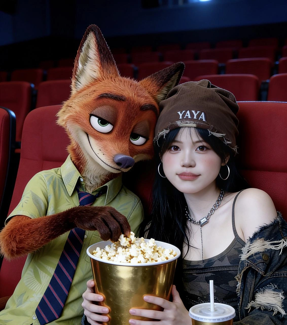 - 你们明明都是坐同一排看电影,怎么人家就能和动画主角合影,还像真的在电影院同框一样?
